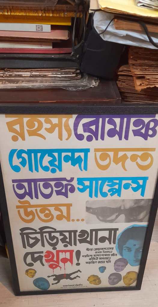 As I come to the fag end of the rendezvous, I noticed a framed poster of a film at the entrance (which is also the exit, as it happens in any flat) which I missed when I entered. Based on the story of Bhibhuti bhusan Bandopadhyay and music by Pt.Ravi Shankar, the film is a 1956 release Aparajita which is second of the Apu Trilogy. Aparajita, loosely translated in English as The Unvanquished.